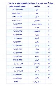 ایران، پس از چین و هند با ۱٫۱ درصد و با فاصله کمی از کشورهای پاکستان و ترکیه در جایگاه بعدی قرار گرفته است. ایران با ارسال حدود ۵۰ هزار دانشجو به خارج از کشور در سال ۲۰۱۵، در بین ۱۰ کشور اول ارسال کننده دانشجو به خارج نبوده و در رتبه پانزدهم واقع شده است. (جدول 2)